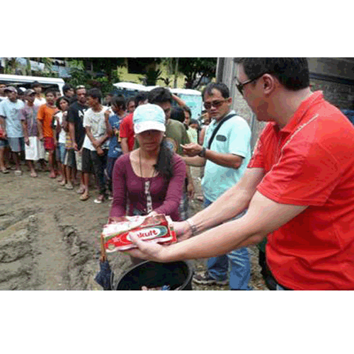 Mr. Michael Ong, Manager of Sales Planning Dept., of Yakult Philippines Inc., participated in the distribution of the relief goods to the victims of typhoon Sendong in Cagayan De Oro and Iligan City.